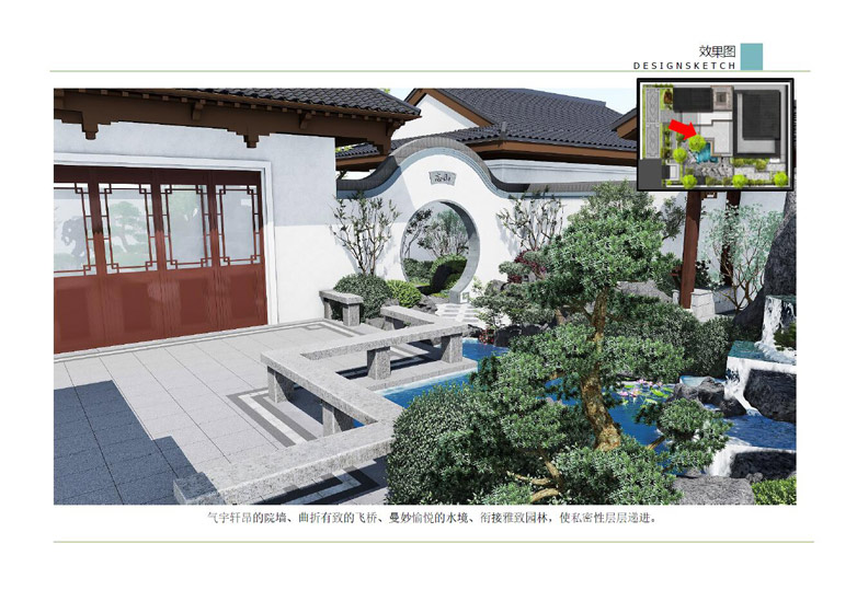 師法自然,融于自然,順應自然,表現自然——這是中國古代園林體現“天人合一”民族文化之所在,是獨立于世界之林的最大特色,也是永具藝術生命力的根本原因。中式景觀設計借鑒中國古典園林的造園手法,結合現代的景觀元素,共同營造豐富多變的景觀空間,達到步移景異、小中見大的景觀效果。