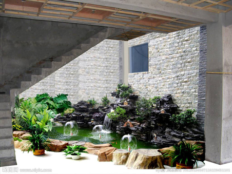 對(duì)于室內(nèi)大型的盆栽植物,其根部如鑲嵌一些太湖石或鵝卵石等,可以去除空洞和單調(diào)的成分,增強(qiáng)室內(nèi)自然景觀的真實(shí)性。